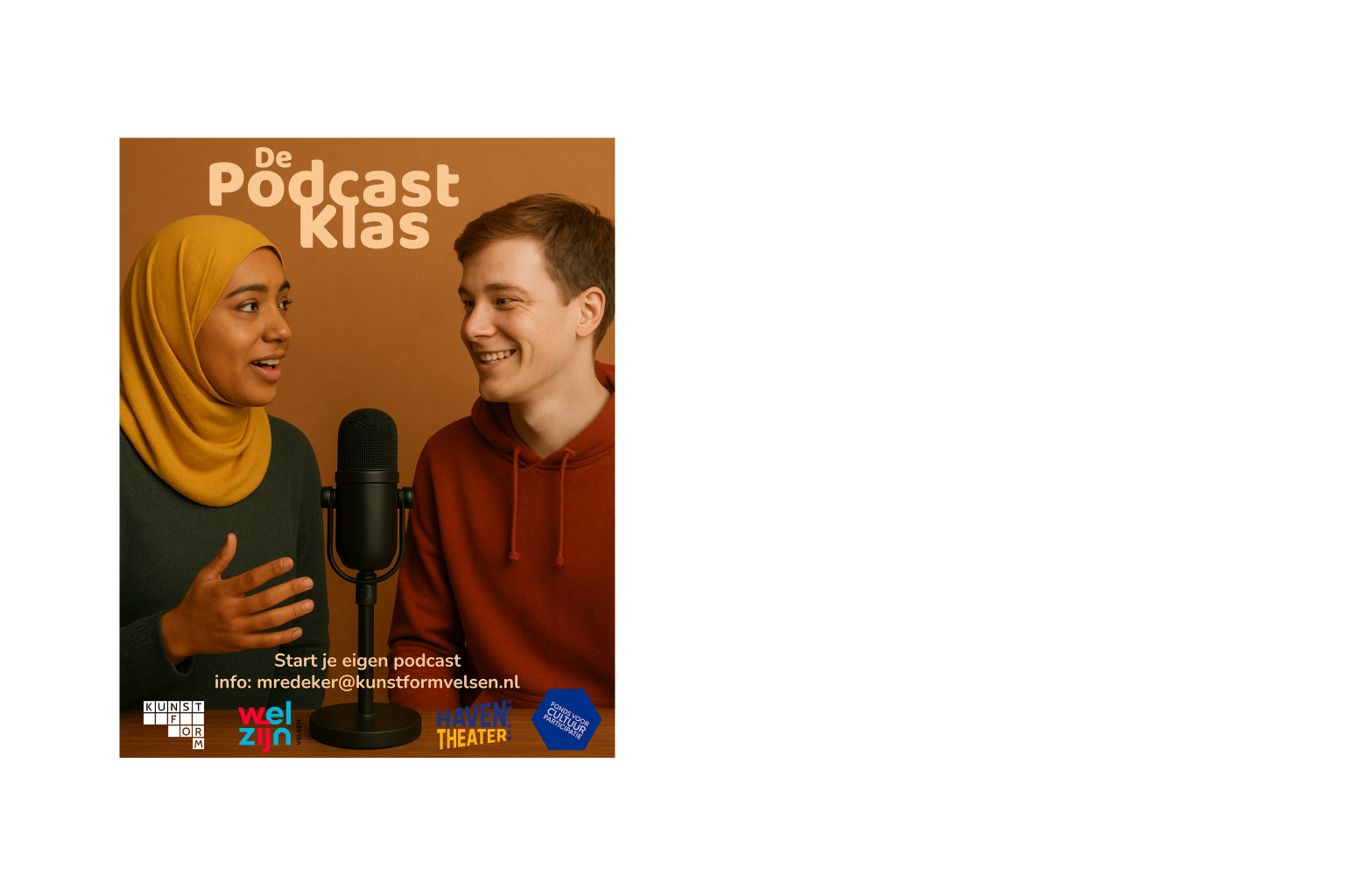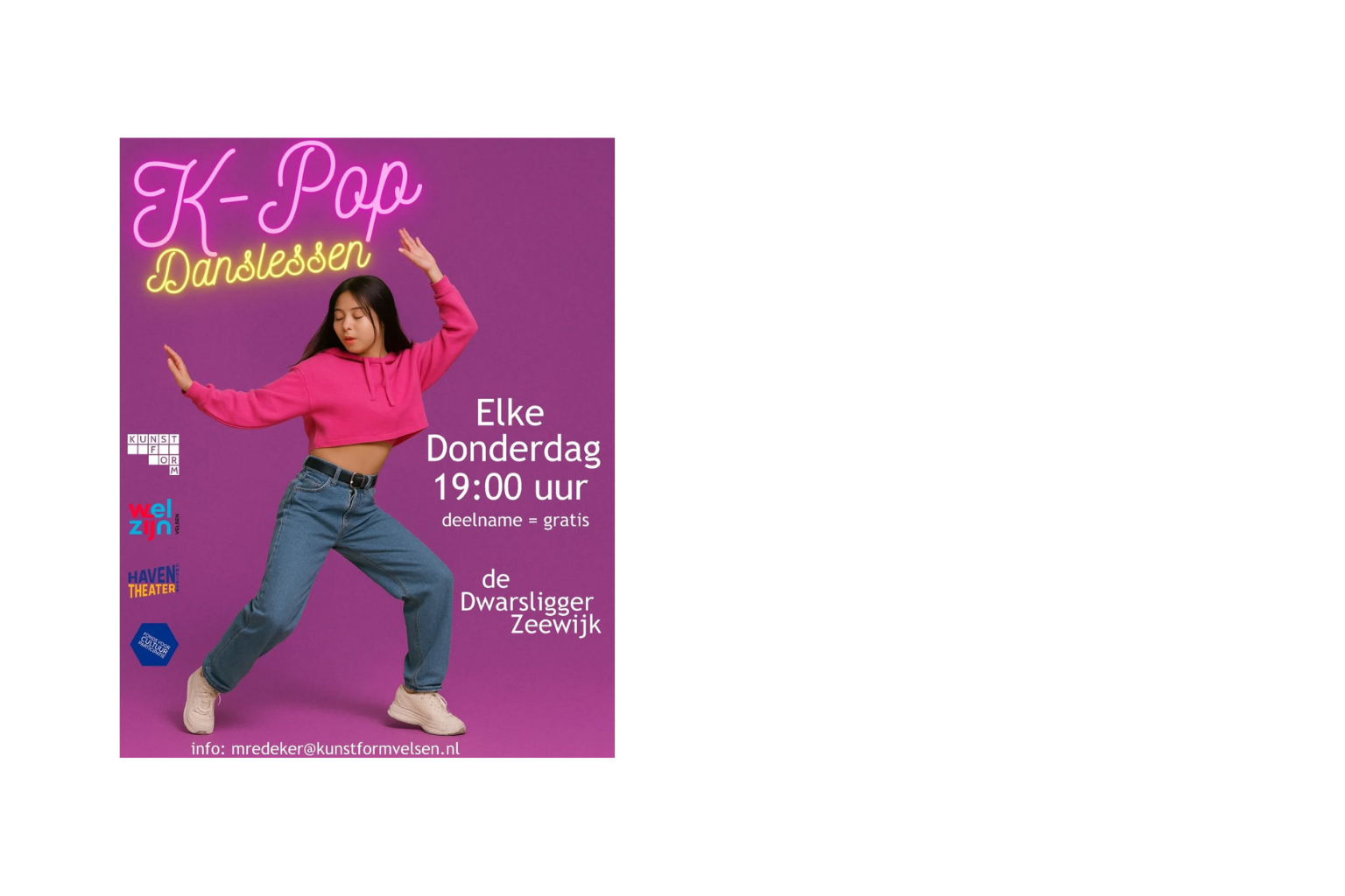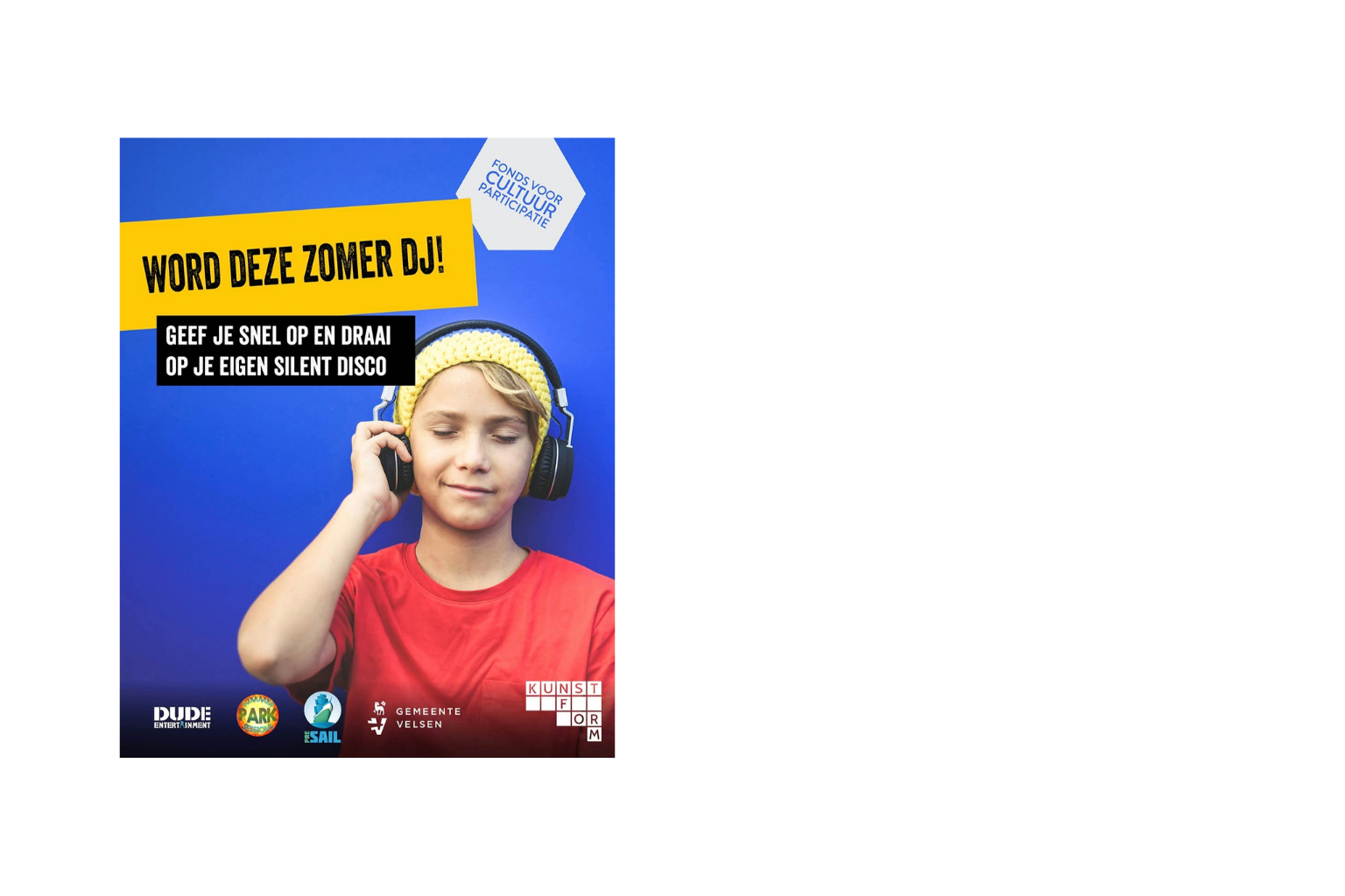 Aan alle onderstaande activiteiten kan iedereen tussen de 12 en 27 jaar GRATIS deelnemen. Klik op de poster en lees alles over de workshops en lessen die jij kunt volgen. Zelf een wens of te gek idee voor een cultureel project? Meld jouw culturele project aan via mredeker@kunstformvelsen.nl.