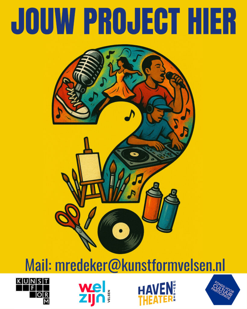 Dan kun je gratis deelnemen aan alle culturele lessen van Jongeren maken Cultuur. Dit is een nieuw initiatief waarbij KunstForm Velsen, Welzijn Velsen en Haventheater IJmuiden de handen ineenslaan om meer culturele educatieprojecten voor jongeren te realiseren.